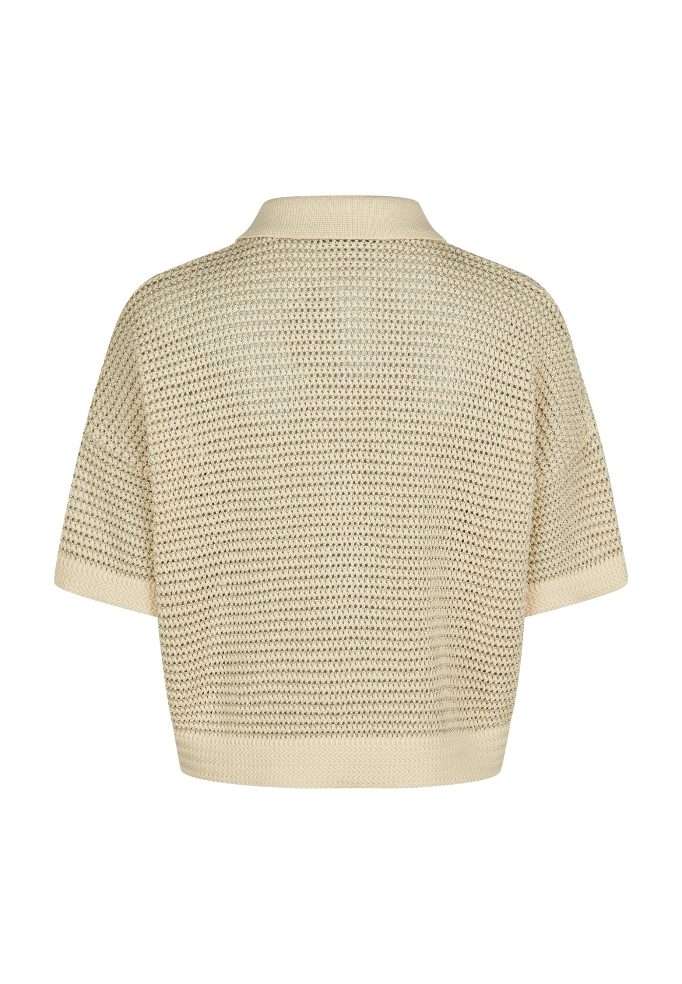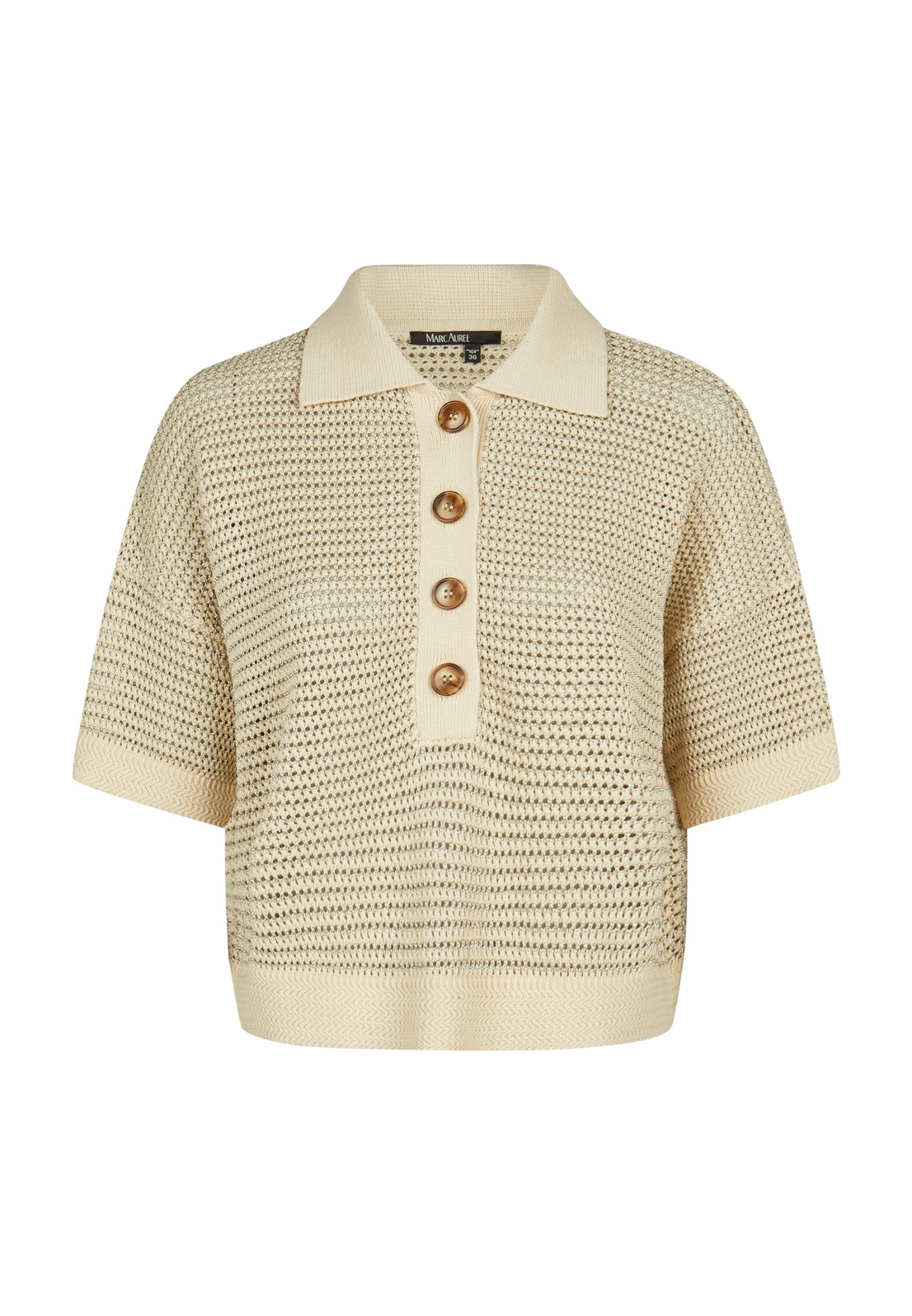 Efektní top v zemitých barvách, výrazně netradiční ažurové provedení s límečkem a knoflíky.